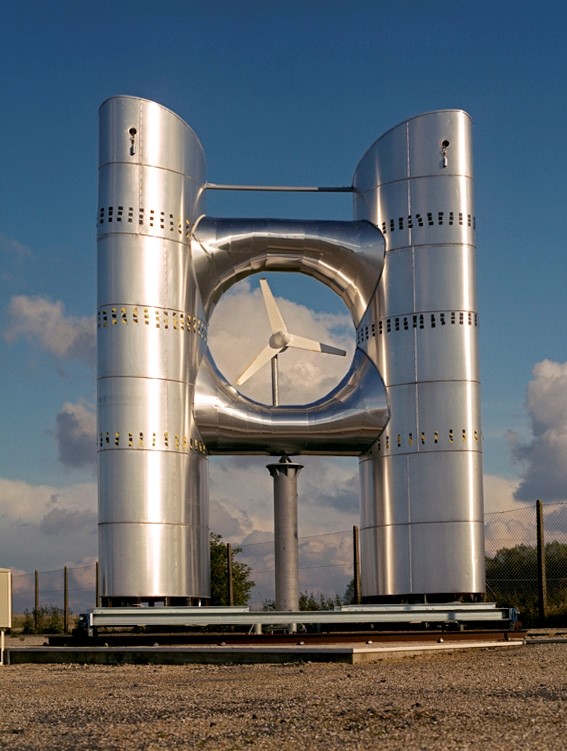 The first wind turbine installed on the site was a Vertical-axis Wind Turbine (VAWT). It was originally built for a sustainable building in Cambridge but, after a change of heart, it came to RAL in 1978. The VAWT was one of the first post-1960s experimental wind turbines in the UK and provided vital input into the debate of whether turbines should have a vertical or horizontal axis. The turbine was removed in 1999 to make way for the Building Integrated Wind Turbine's (BUWT) concentrator.