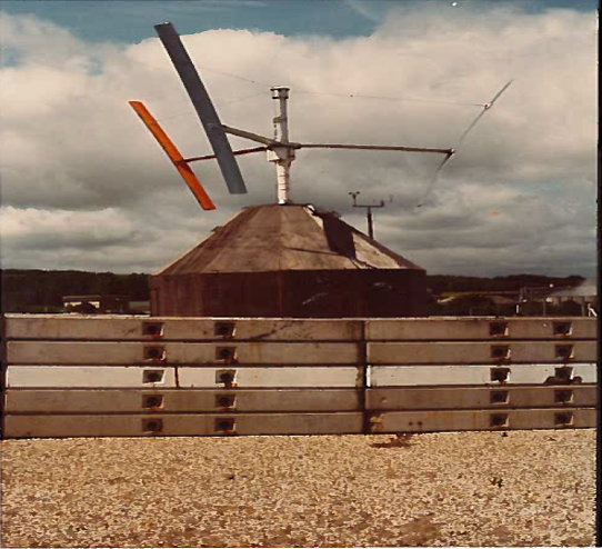 In 1983, five years after the installation of the VAWT, a second wind turbine was added to the site - the American-built North Wind L-916 turbine. The new 14kW turbine was used in wind/diesel experiments and also provided data for projects modelling dynamically active turbines. It is interesting to note that the turbine's maintenance logs recorded a repeated issue of jackdaws making nests in the turbine cover! The equipment was finally dismantled in 2005 (having been rebuilt in 1996) and was taken to the University of Leicester for use in undergraduate projects.