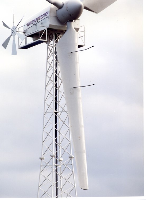 The Windharvester installation in 1990 (left) and the turbine seen in 1996 (right)