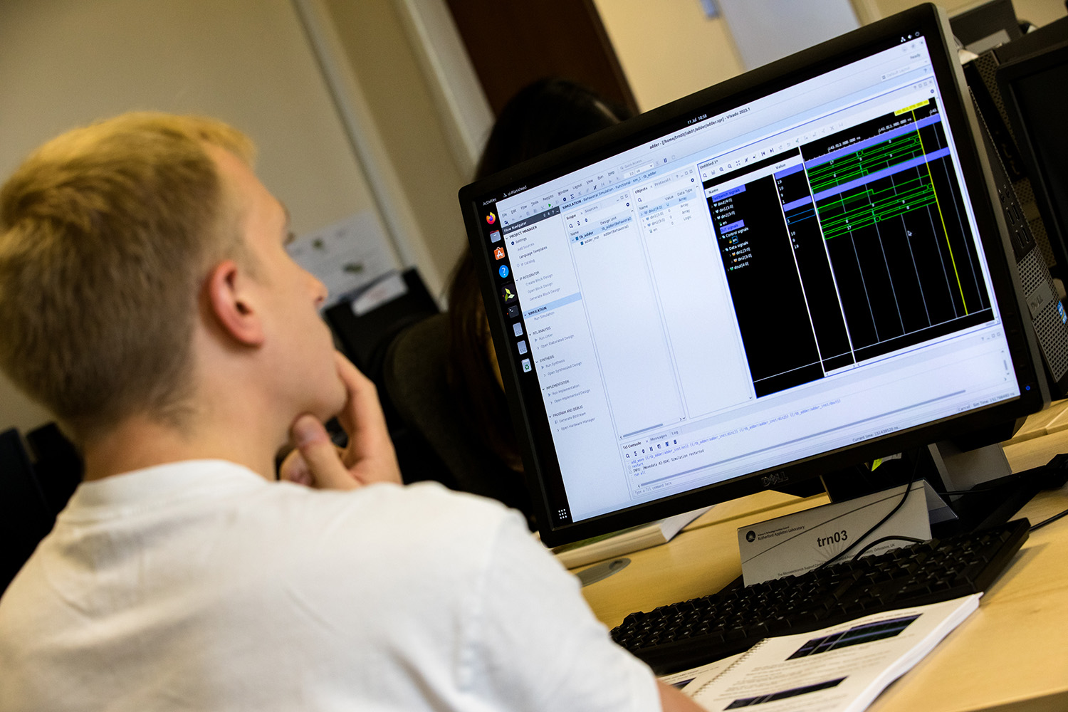 Once delegates had gained basic proficiency with circuit development in VHDL, they then took the plunge into the FPGA design flow and used AMD Vivado to implement the design within a physical FPGA as part of a hardware prototyping system.