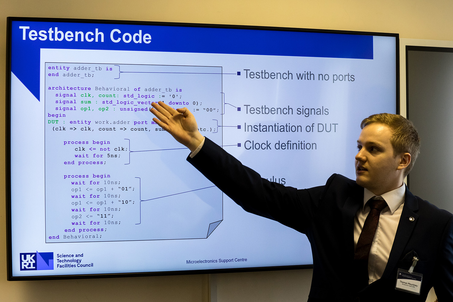 Afterwards, through a combination of lectures and hands-on practical sessions, delegates began describing simple logical circuit blocks within VHDL.