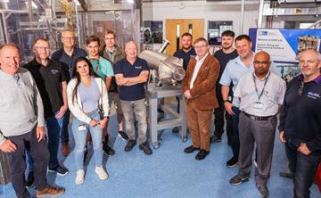 Image: STFC colleagues from the Technology Department and ASTeC are pictured with cavity 203 in the SuRF Lab at Daresbury Laboratory. Credit: STFC