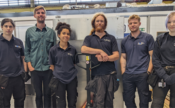 Image: Isaac Blake, Nike Templeton, Susan Shirling, Luke Bladen, Matt Clarke and Angeliza Robinson with one of the custom made transportation cases. Credit: STFC
